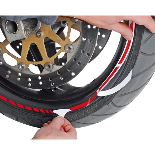 - Packungsinhalt: 14 gleichgroße Teilkreissegmente (3 Streifen je Felgenseite, plus 1 Reservestreifen je Motorradseite)