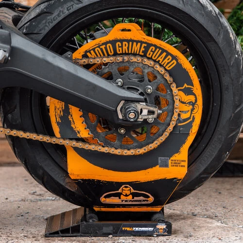 Endlich keinen Dreck mehr beim Schmieren der Kette, denn der Moto Grime Guard ist so konzipiert, dass es Bremsen und Reifen während der Motorradpflege & -reinigung schützt und gleichzeitig überschüssiges Produkt auffängt, um Garagenböden und Auffahrten sauber zu halten.