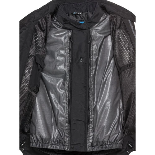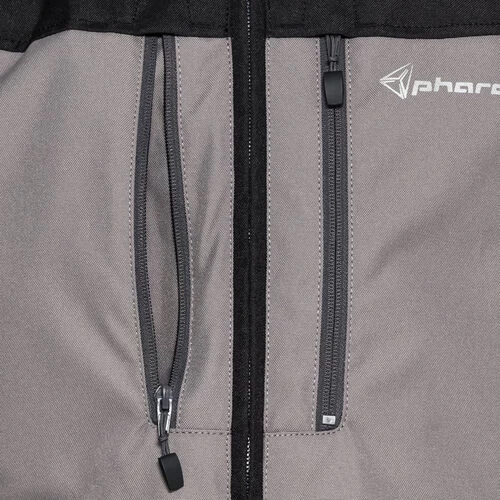 - 7 Außentaschen, davon jeweils 2 Einschubtaschen, Brusttaschen mit Reißverschluss sowie wasserdichte Taillentaschen und eine Gesäßtasche